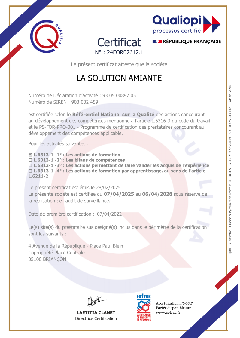 LA SOLUTION AMIANTE est un centre de formation indépendant, créé pour animer vos formations personnalisées.